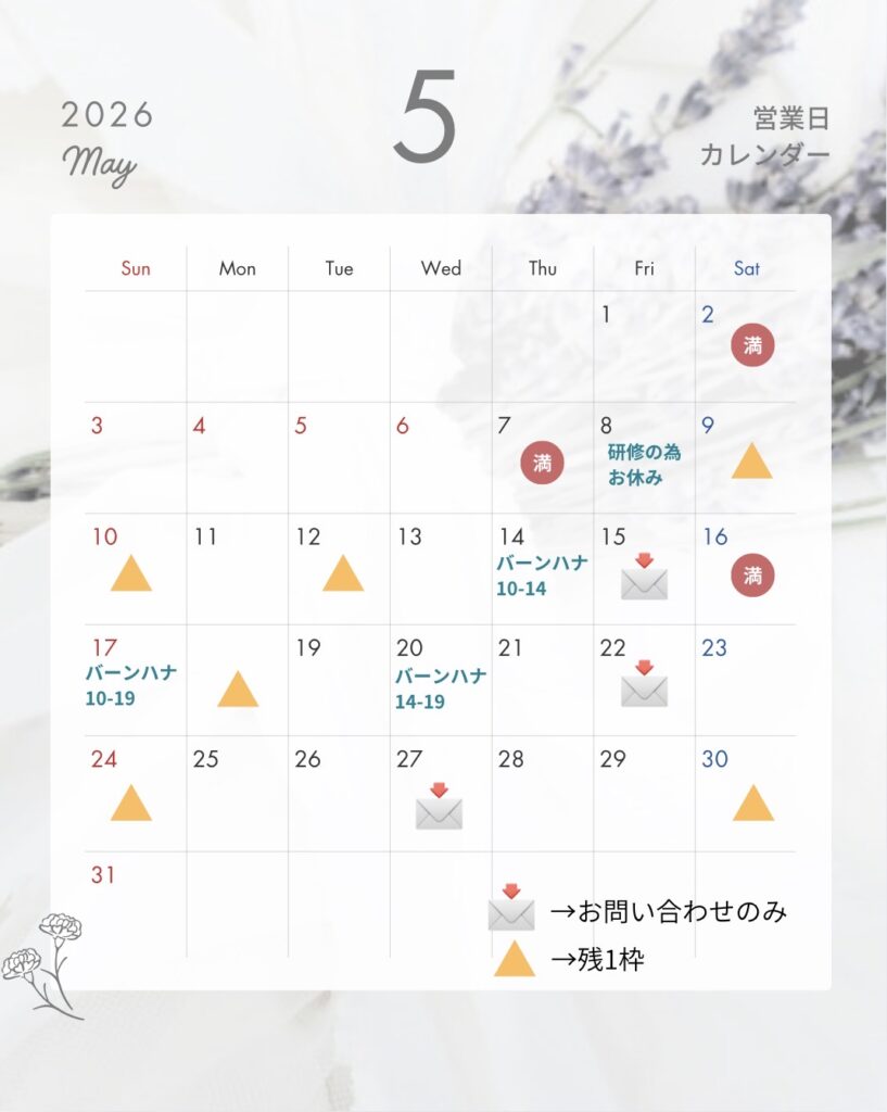5月営業予定٩(๑❛ᴗ❛๑)۶(2026年4月30日)
